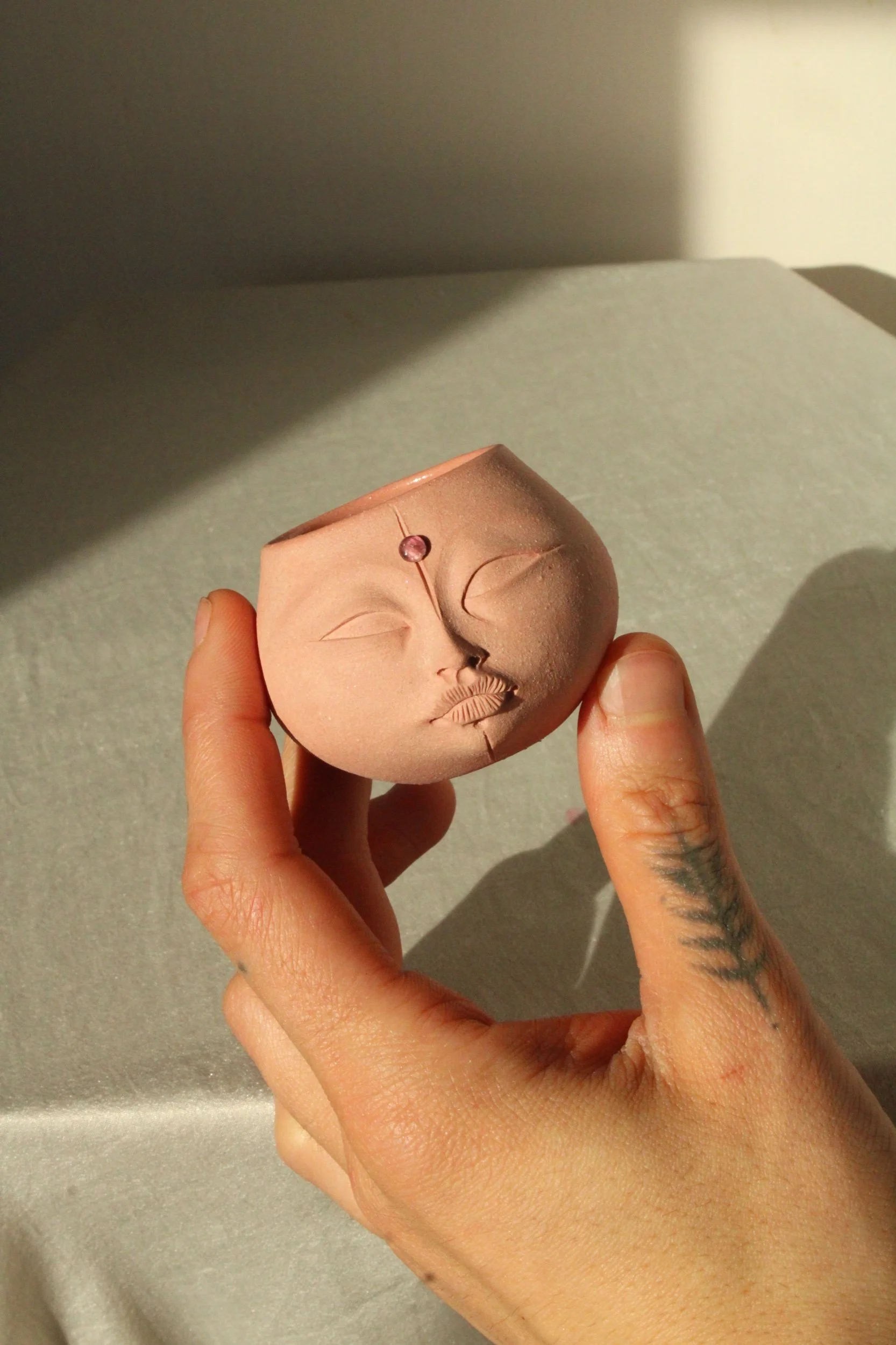 Stoneware Mini with watermelon tourmaline set in